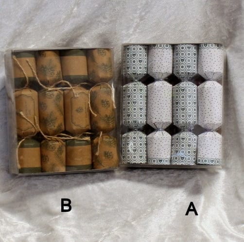 Die Knallbonbons liegen in einer schönen Schachtel mit durchsichtigem Deckel.