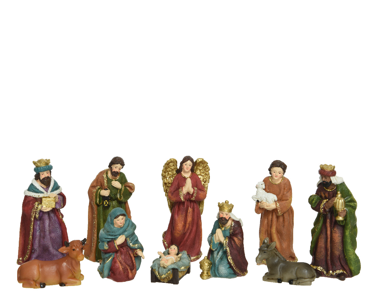 Krippenspiel mit 10 Figuren, Höhe bis zu 13 cm, exklusiver biblischer Weihnachtsschmuck
