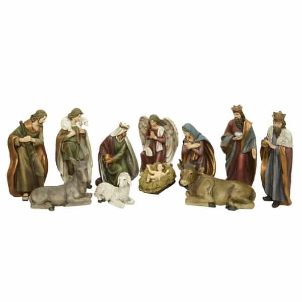 Krippenspiel mit 11 Figuren. Höhe bis zu 81 cm. – Exklusiver christlicher Weihnachtsschmuck