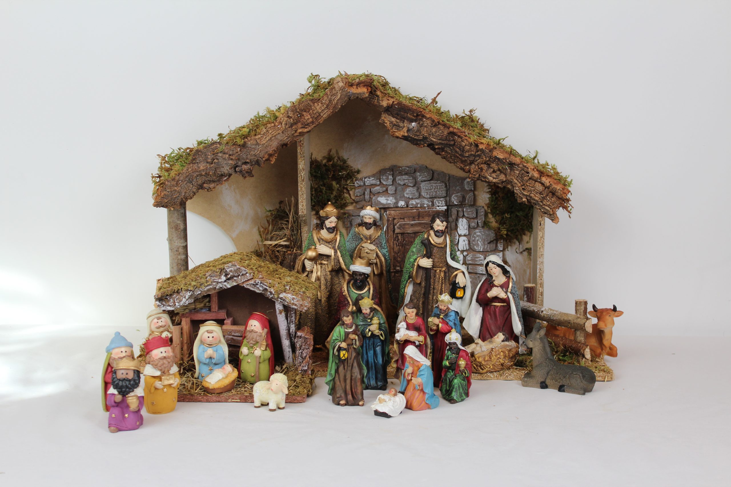 Krippenspiel mit 7 losen Figuren ist in heiliger Stil ausgeführt. Die Höhe der Figuren beträgt bis zu 25,5 cm. Die Länge bis zu 10 cm. Die Breite bis zu 7 cm. Das Material ist aus Polyresin, das im Freien stehen kann. Das Krippenspiel besteht aus insgesamt 7 Figuren: Maria, das Jesuskind, Josef, die 3 Weisen und ein Hirte. Erzählen Sie das Weihnachtsevangelium für Ihre Kinder mit Hilfe dieser schönen religiösen Weihnachtsfiguren. Erzählen Sie den Kindern, warum wir Weihnachten feiern und dass Jesus in Bethlehem in einer Krippe in einem Stall geboren wurde. Die Erzählung kann für Ihre Kinder mit diesen Krippenfiguren lebendig gemacht werden. Das Krippenspiel ist sehr geeignet für Kirchen, Marktplätze, in christlichen Schulen, Kindergärten und Vereinen. Der Preis für das gesamte Krippenspiel mit allen Teilen ist inkl. Versand.