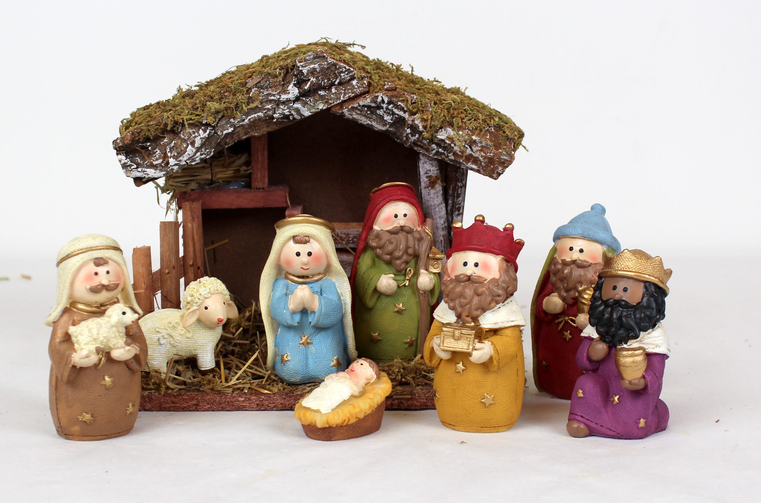 Krippenspiel mit 8 Figuren, Höhe bis zu 9,5 cm, exklusiver biblischer Weihnachtsschmuck