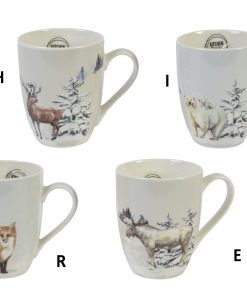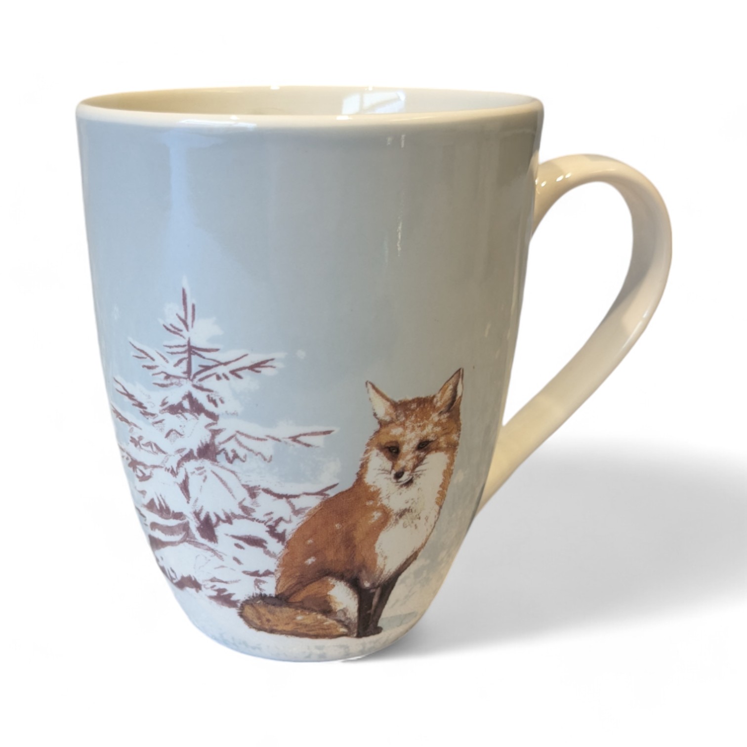 Tasse in weißem Porzellan mit Fuchs im winterweißen Wald. 35 cl.