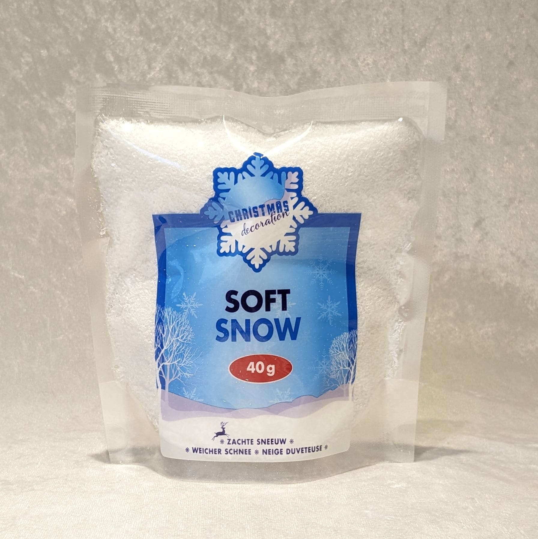 Wie soll deine Weihnachtslandschaft dieses Jahr aussehen? Hier findest du alles, was du für alle Arten von Weihnachtslandschaften brauchst. KAUFEN Sie künstlichen Schnee zu einem GÜNSTIGEN PREIS. Hier sehen Sie eine Tüte á 40 Gramm. Wir haben eine große Auswahl an Tüten in verschiedenen Größen für künstlichen Schnee.