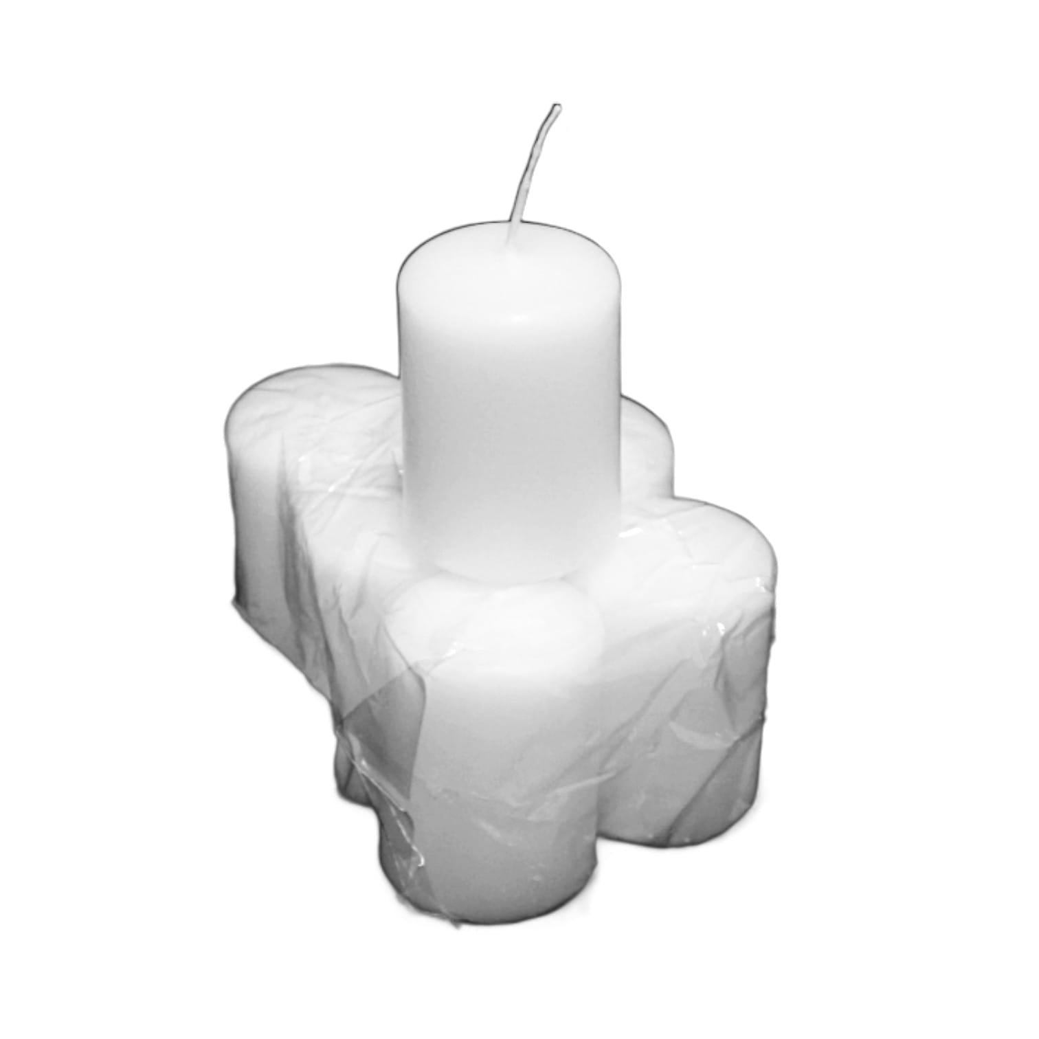 Weiße glatte Blockkerzen, auch als Mittagskerzen oder Kuvertkerzen bezeichnet.