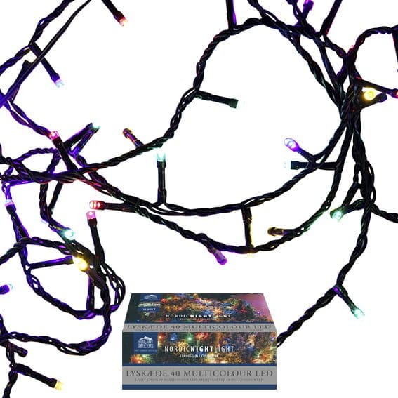 Bei uns finden Sie eine große Auswahl an Lichterketten für den Weihnachtsbaum. Wir haben sowohl Batterie- als auch Stromlichterketten. Diese Multicolor-Lichterkette hat 40 LED-Lichter auf einem dunkelgrünen Kabel und wird mit Adapter geliefert. Jedes LED-Licht hat einen Durchmesser von ca. 4 mm und eine Länge/Höhe von ca. 2,5 cm. Weihnachtsbäume mit Lichterketten sind unglaublich schön und dekorativ anzusehen in der dunklen Zeit um Weihnachten herum. Die Lichterkette kann auch an anderen Arten von Bäumen als Weihnachtsbäumen befestigt werden. Genießen Sie den Anblick des schönen Lichts in der dunklen Zeit im November und Dezember. Weihnachtszeit bedeutet Lichterfest. Weihnachtsbäume, sowohl draußen als auch drinnen mit Lichterketten geschmückt, sind eines der schönsten Dinge, die man sehen kann. Wir haben eine große Auswahl an Lichterketten für Weihnachtsbäume, sowohl draußen als auch drinnen. Wir haben Lichterketten für 220V Strom sowie Lichterketten für Batterie. Wir haben auch Lichterketten, die miteinander verbunden werden können. Wenn Sie also eine wirklich lange Lichterkette benötigen, können Sie sie hintereinander anschließen. In den dunklen Wintermonaten November, Dezember und Januar, in denen die Sonne nur sehr wenige Stunden am Himmel steht, ist es für uns alle wichtig, dass wir andere Lichtquellen haben. Sie können dazu beitragen, Licht und gute Stimmung zu verbreiten, indem Sie einen Weihnachtsbaum im Garten mit einer Lichterkette schmücken. Sie können auch eine Lichterkette oder ein Lichternetz in einen Baum hängen, den Sie bereits im Garten haben. Unsere Lichterketten für den Außenbereich sind mit dicken, strapazierfähigen Kabeln ausgestattet. Lichterketten für Weihnachtsbäume im Innenbereich sind mit einem dünneren und diskreteren Kabel ausgestattet. Die kleinen Batterie-Lichterketten bestehen aus sehr dünnen Drähten oder LED-Strängen. Diese kleinen Batterie-Lichterketten sehen toll aus, wenn man sie um einen Tannenzweig oder einen Ast wickelt und sie an der Decke im Wohnzimmer aufhängt. Sie können auch mit Weihnachtskugeln oder kleinen dekorativen Glasvögeln den Tannenzweig schmücken. Kleine Batterie-Lichterketten werden auch häufig in Laternen und Weihnachtsdekorationen verwendet. Wir haben auch Lichterketten, die miteinander verbunden werden können. Wenn Sie also eine wirklich lange Lichterkette benötigen, können Sie sie hintereinander anschließen.