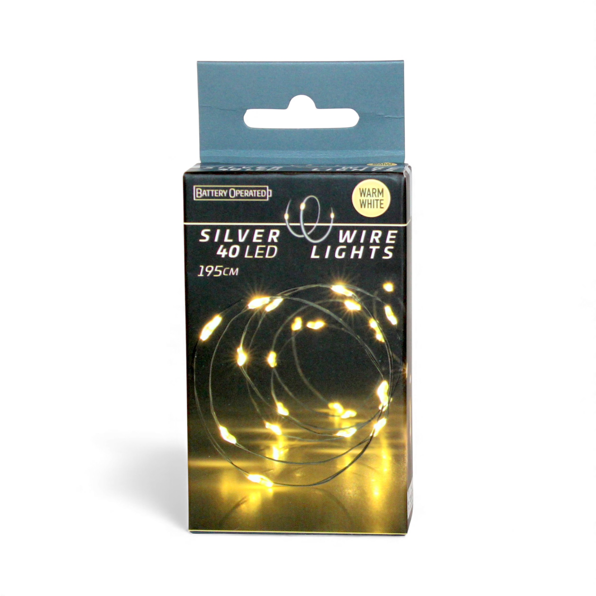 LED Lichterkette Silberdraht 40 LED in warmweiß.