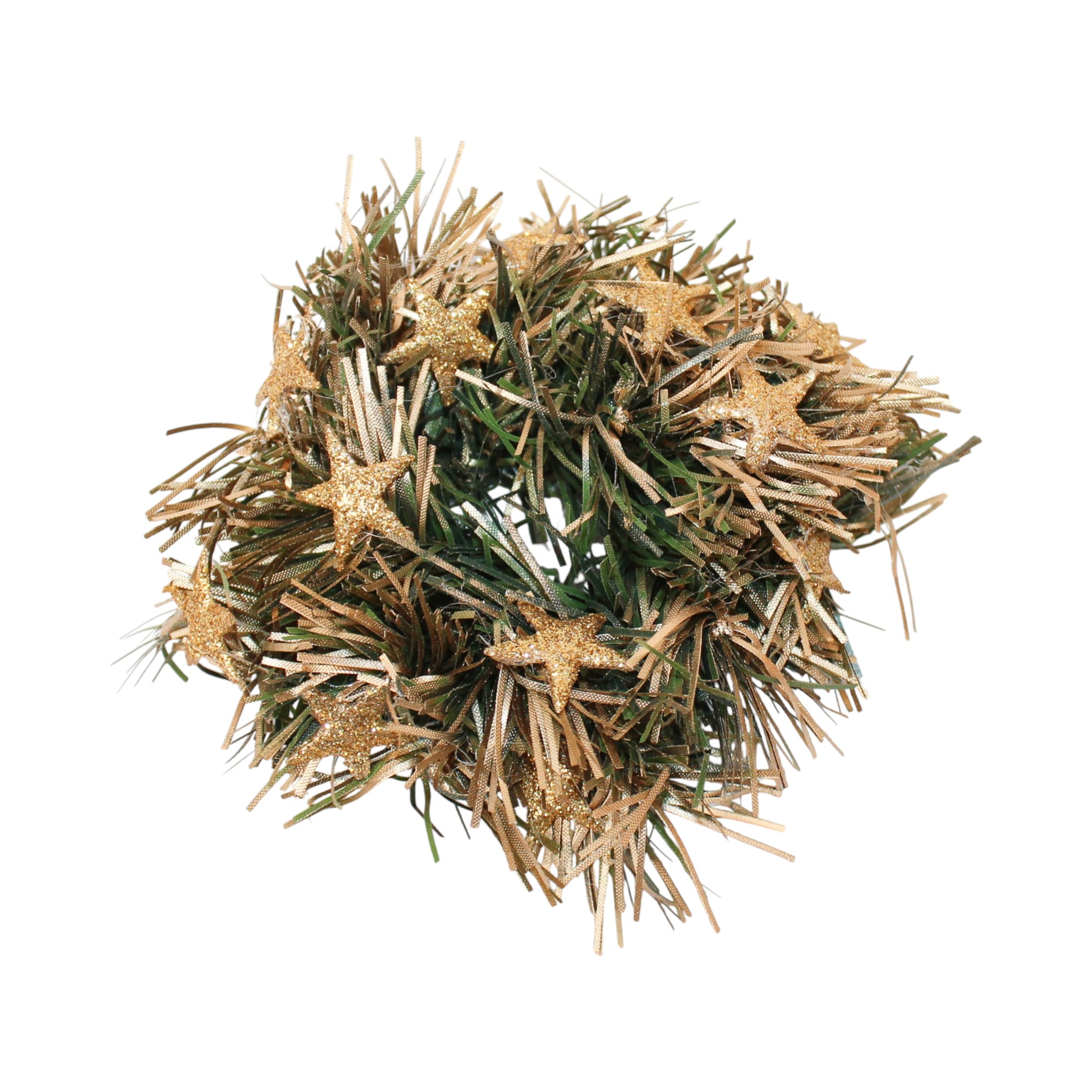 10 centimeter lyskrans med guld og grønne strimler og guldstjerner