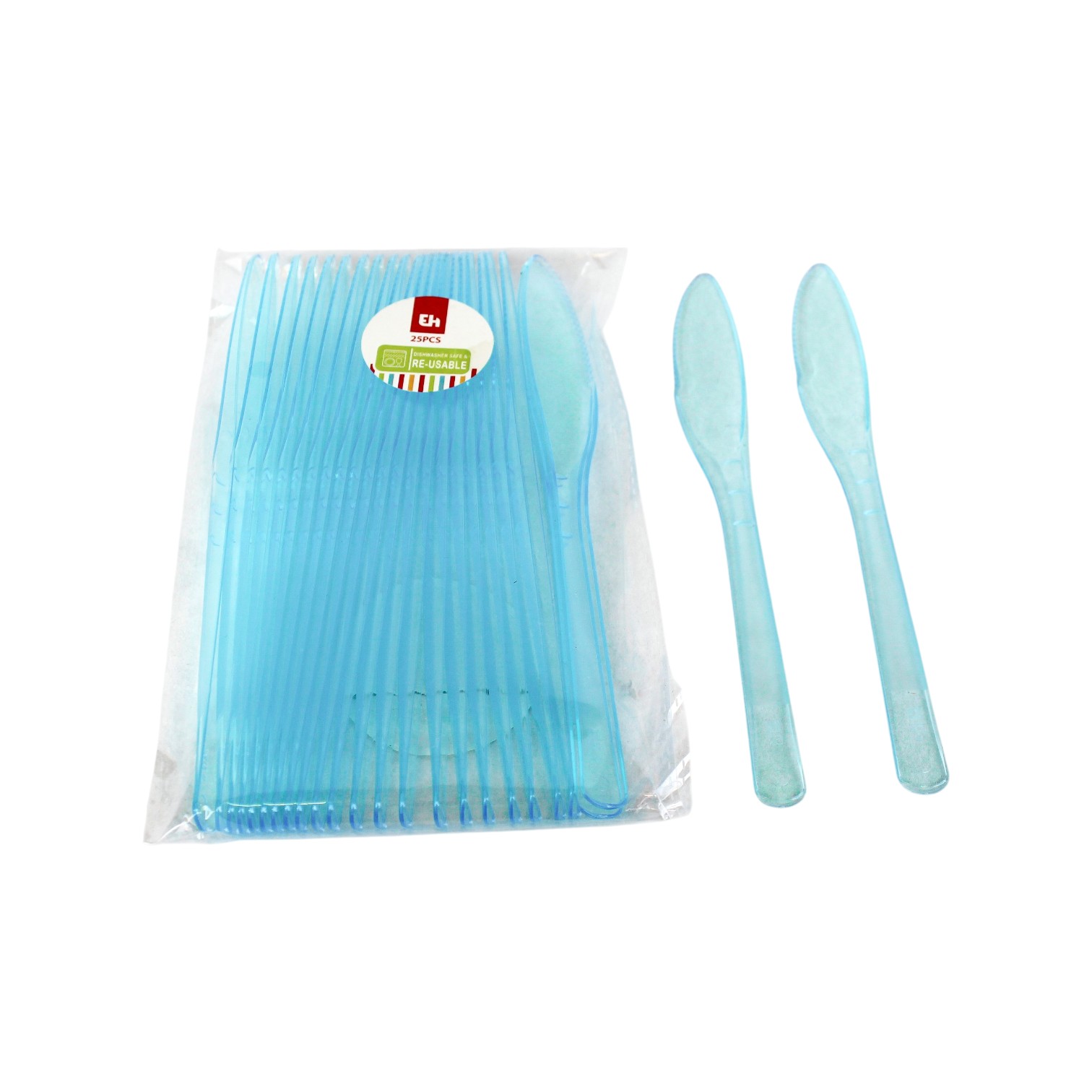 Messer, Mehrwegservice, BLAU transparentes Plastik 17,5 cm (25 stk.)