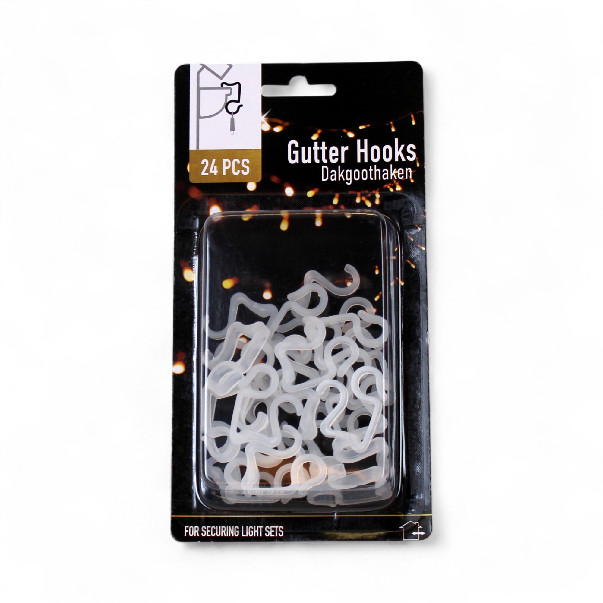 Montagehaken für Weihnachtslichter und Lichterketten. 24 stk. smarte Haken aus einem matten weißen Plastikmaterial, die leicht an Dachrinnen montiert werden können. Die Clips messen jeweils 3 x 2 cm und sind so gestaltet, dass sie leicht an Dachrinnen festgeklickt werden können, um dann die Lichterketten an den kleinen Haken aufzuhängen. Hängen Sie sie mit einem Abstand von ca. 30-50 cm auf, je nach Art der Lichterkette, die aufgehängt werden soll.