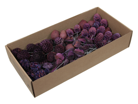 Naturdekoration – 100 Stk. ass. Getrocknete Deko-Dinge auf Draht für Weihnachtsdekorationen. Lila Nuancen