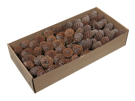 Die braunen Naturkegel sind geeignet für Dekorationen und Großproduktionen zum Weiterverkauf.