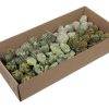 Schachtel mit verschiedenen getrockneten Zapfen, Blumen, Früchten und Samenständen in Natur, Weiß, Gold, Silber, Cremefarben oder gebleicht in großen Mengen. Erhältlich in großen Schachteln, sowohl gemischt als auch mit einheitlichen Produkten.