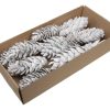 Schachtel mit verschiedenen getrockneten Zapfen, Blumen, Früchten und Samenständen in Natur, Weiß, Gold, Silber, Cremefarben oder gebleicht in großen Mengen. Erhältlich in großen Schachteln, sowohl gemischt als auch mit einheitlichen Produkten.
