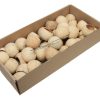 Schachtel mit verschiedenen getrockneten Zapfen, Blumen, Früchten und Samenständen in Natur, Weiß, Gold, Silber, Cremefarben oder gebleicht in großen Mengen. Erhältlich in großen Schachteln, sowohl gemischt als auch mit einheitlichen Produkten.