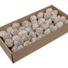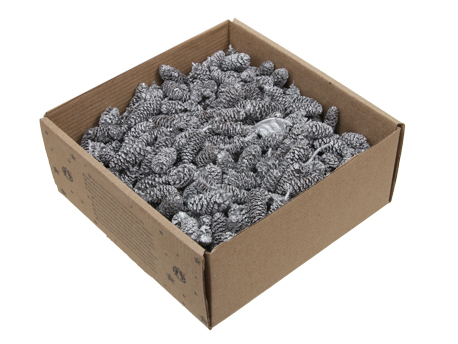 Schachtel mit verschiedenen getrockneten Zapfen, Blumen, Früchten und Samenständen in Natur, Weiß, Gold, Silber, Cremefarben oder gebleicht in großen Mengen. Erhältlich in großen Schachteln, sowohl gemischt als auch mit einheitlichen Produkten.