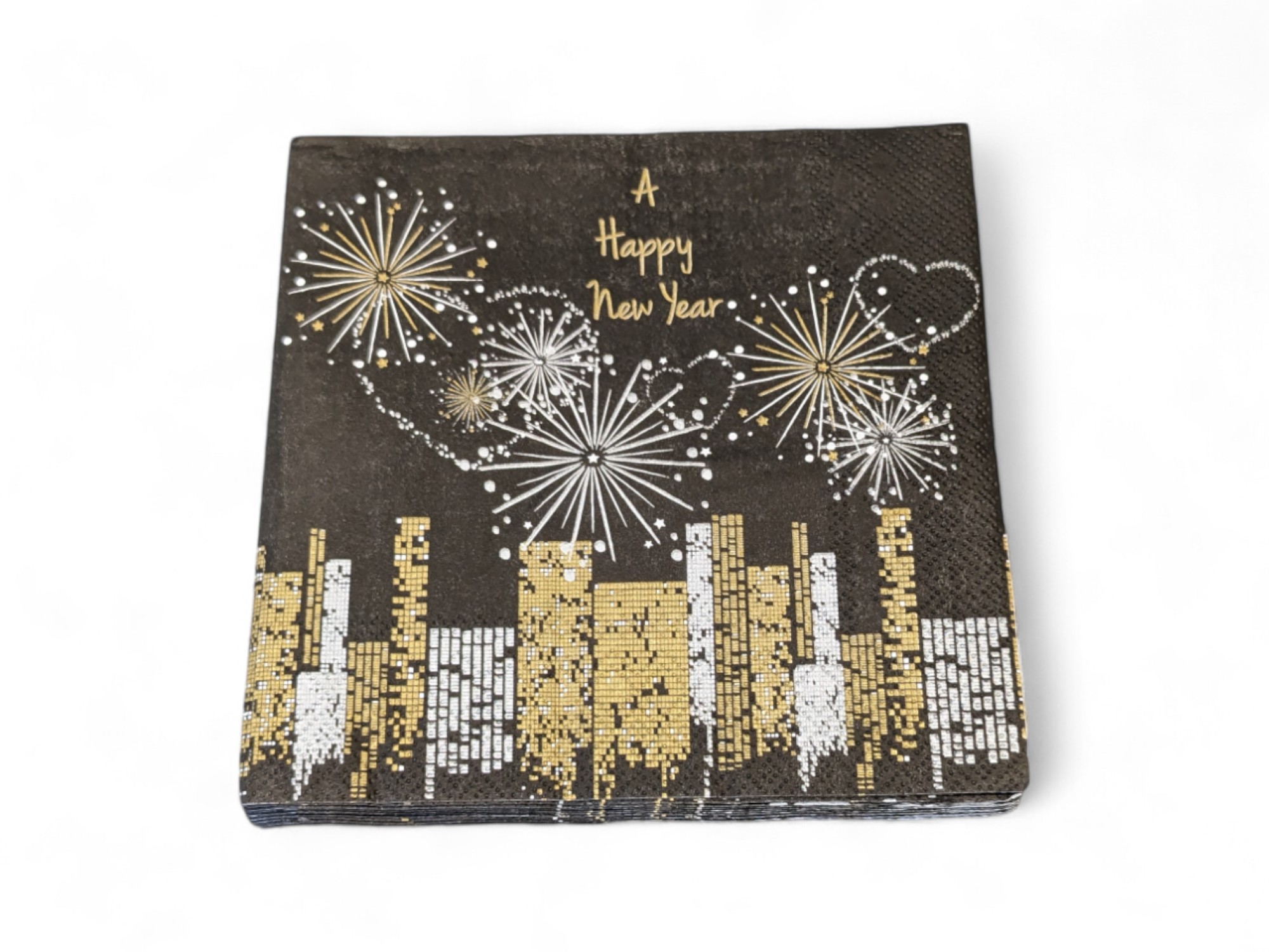Decken Sie einen schönen Neujahrstisch mit diesen tollen und festlichen schwarzen Servietten mit verschiedenen Neujahrsdekorationen. Sehen Sie die vielen tollen und günstigen Servietten mit sowohl Neujahrs- als auch Weihnachtsmotiven, die wir haben. Tolle Weihnachtsservietten sind auch ein gutes Gastgebergeschenk oder Adventsgeschenk für Erwachsene. Geben Sie z.B. tolle Servietten sowie einige Kerzen als Geschenk – das ist etwas, das alle Menschen gebrauchen können. Sie können das Geschenk rechtzeitig kaufen und es bei sich auf Lager haben, bis Sie es benötigen.