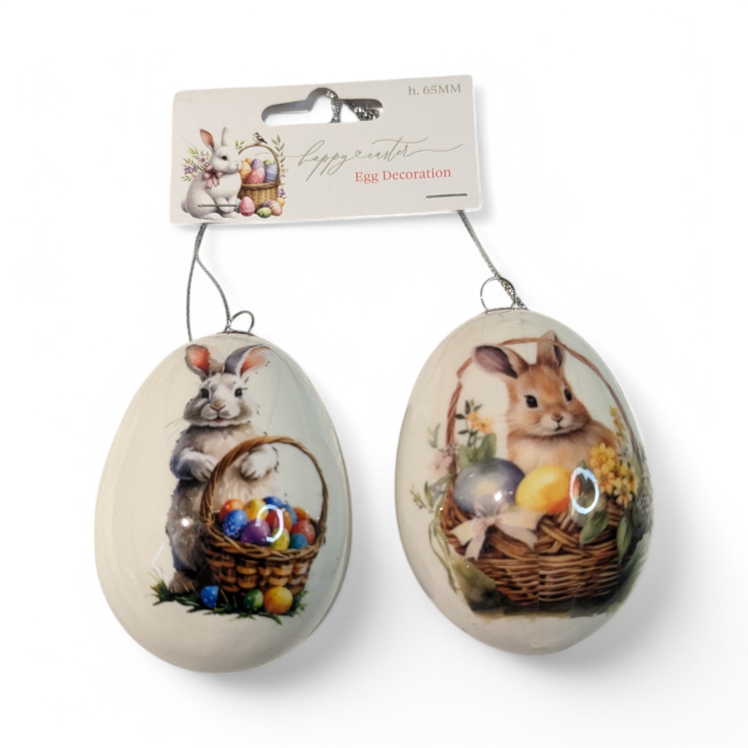 Ostereier zum Aufhängen aus Polystyrol mit Osterhasen und Eiern. 2 Stk.