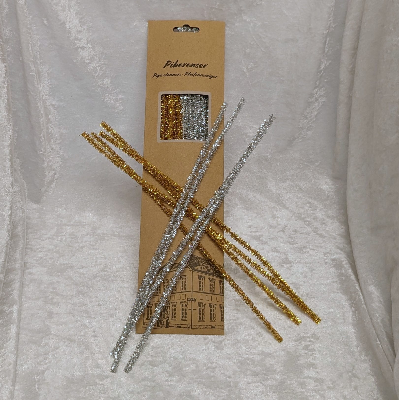 Pfeifenreiniger GOLD/SILBER 30 Stk. Länge 30 cm. Durchmesser 0,6 cm. Glitzerdekoration