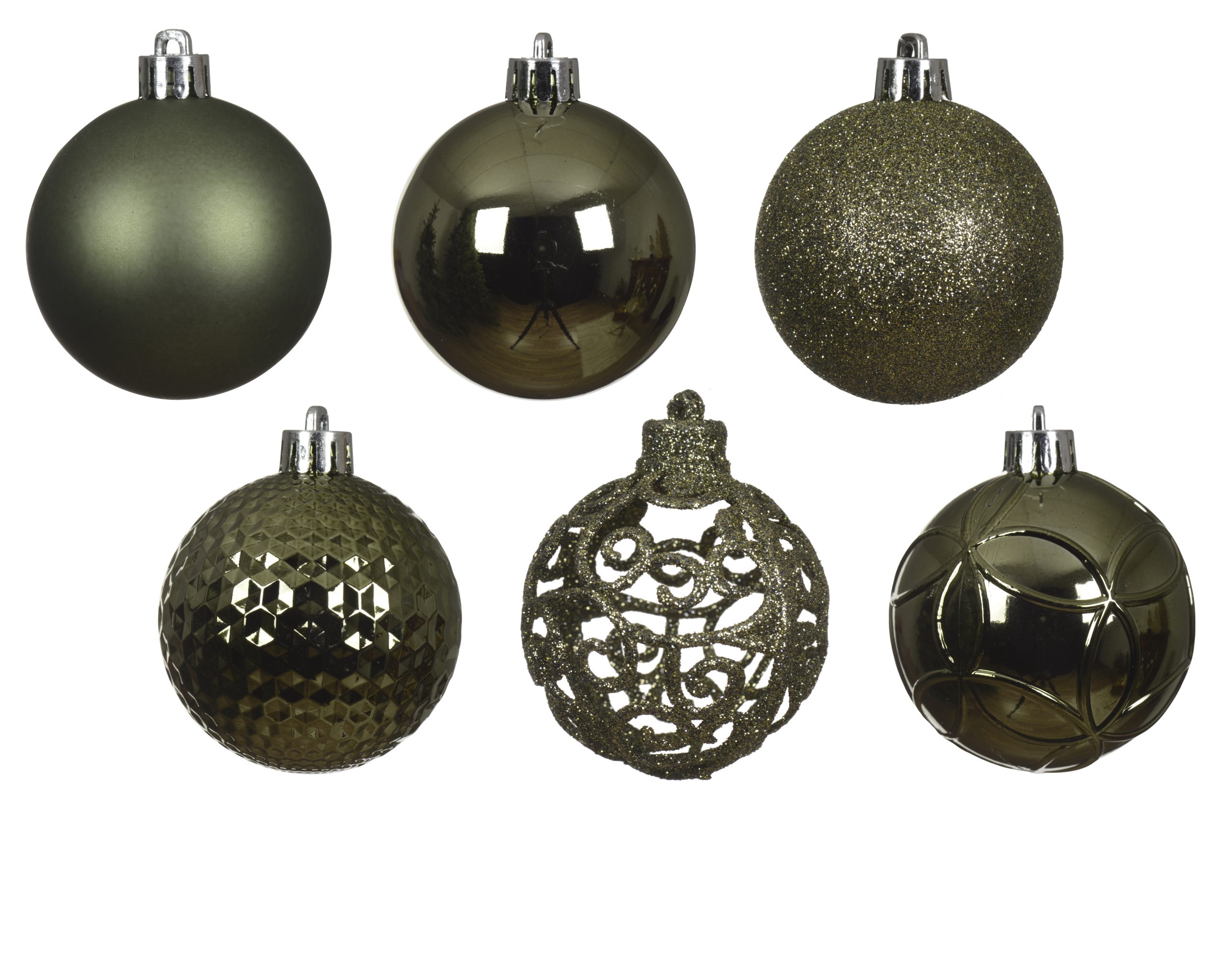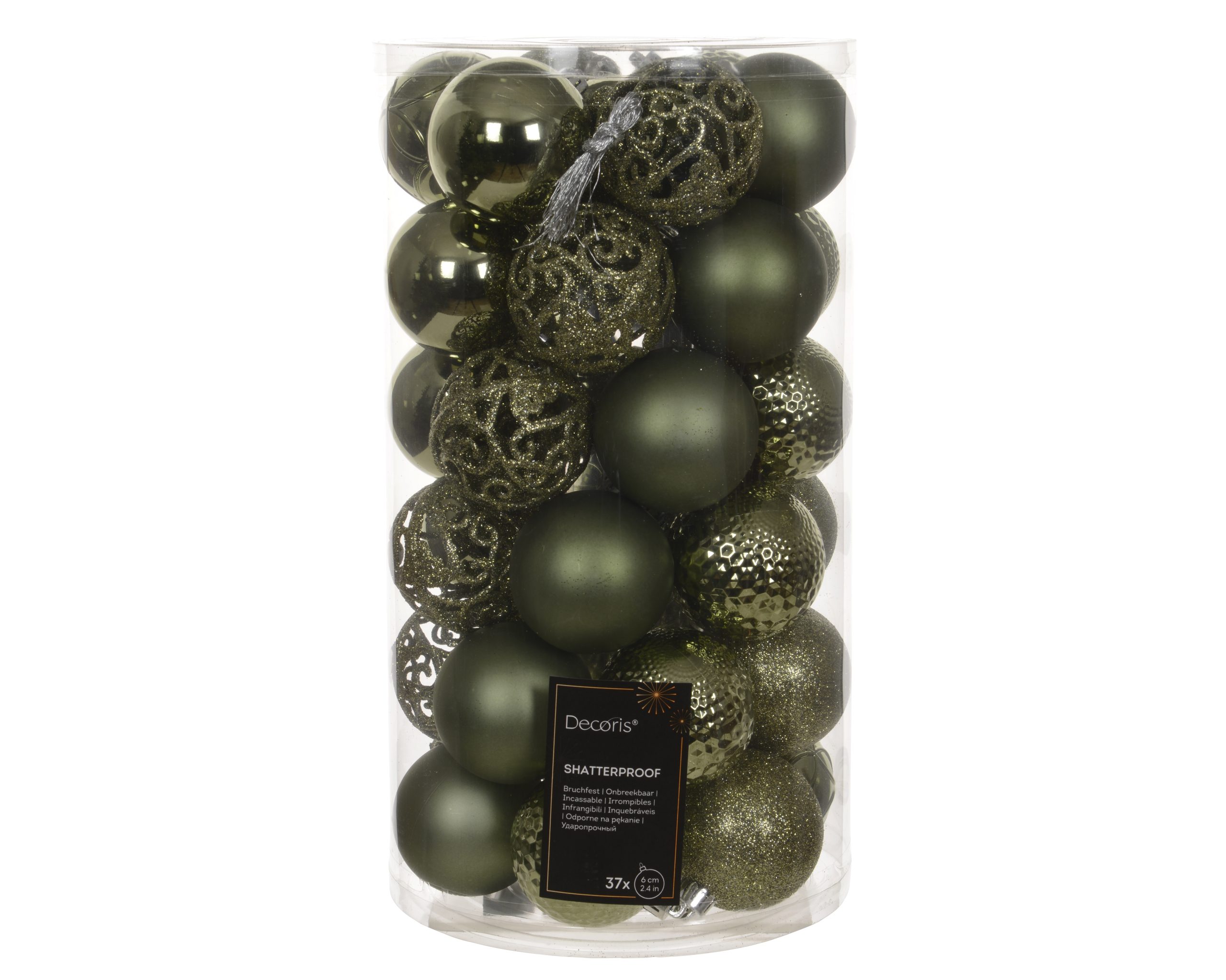 Plastik Weihnachtskugeln in ROSMARIN GRÜN, Ø6 cm. 37 Stk.
