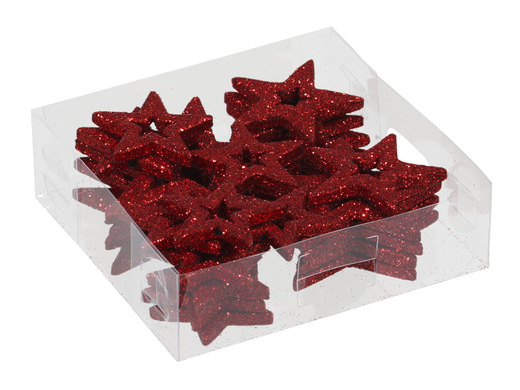 Plastiksterne mit Glitzer und Loch in der Mitte. ROT 24 Stk.
