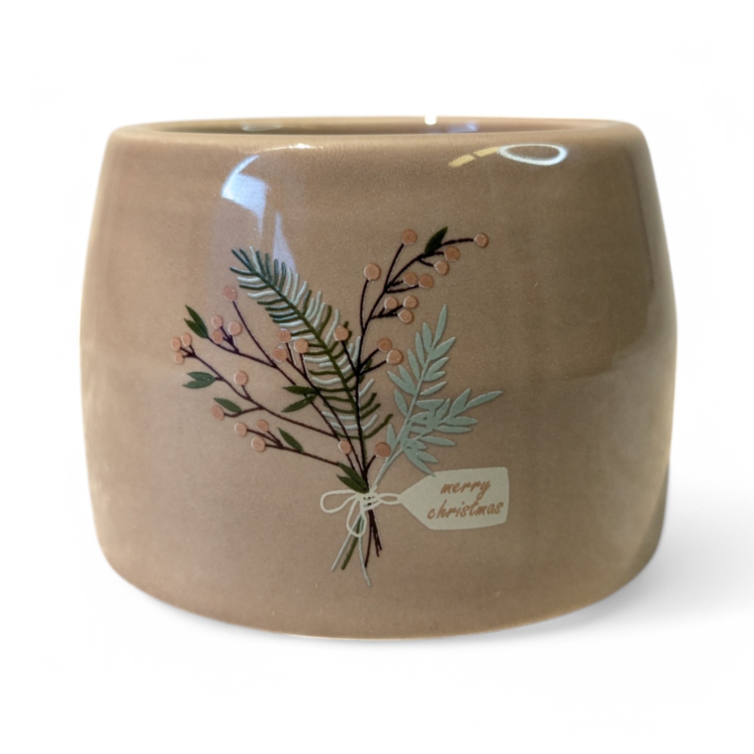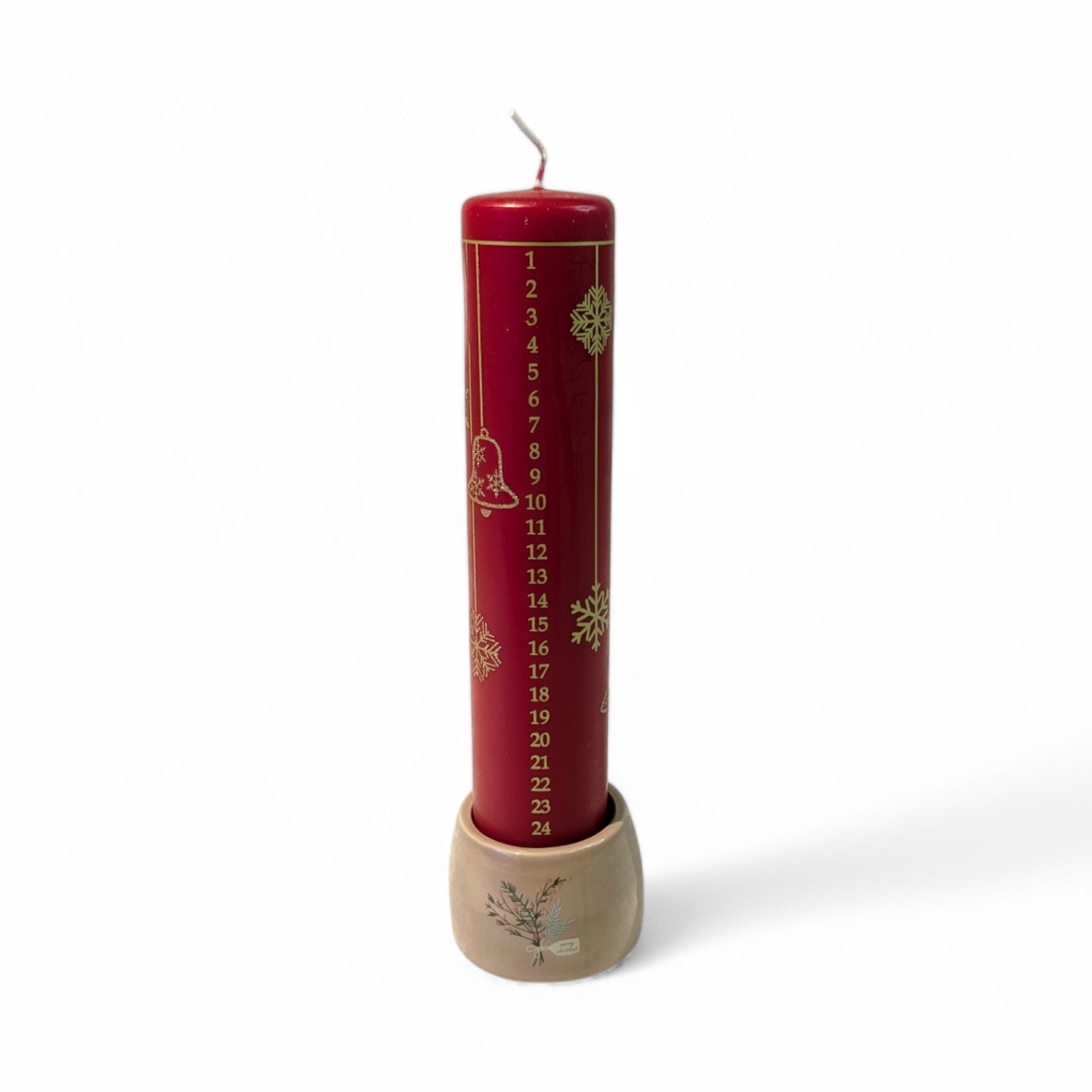 Porzellan-Kerzenhalter in Braun für Ø5 Stearinlys und Kalenderlys. Der Kerzenhalter hat eine Merry Christmas-Zweigdekoration an der Seite. Der Halter passt zu vielen Kalenderlys in Ø5. Durchmesser 7 cm. Höhe 5 cm. Schaffen Sie zusätzliche Weihnachtsstimmung mit diesem Kalenderlys-Kerzenhalter auf dem Tisch. Kaufen Sie auch Kalenderlys hier im Webshop. Wir haben eine große Auswahl!
