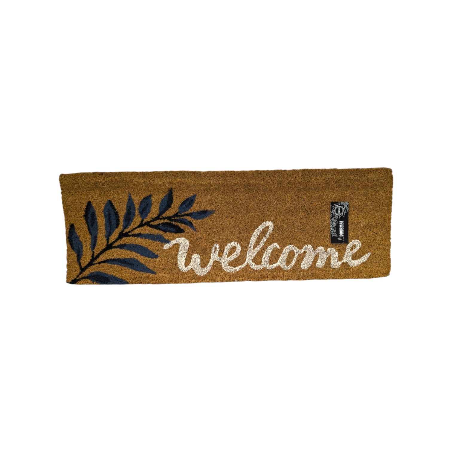 Fußmatte aus Kokos mit Palmenblatt und weißem Text welcome. Längliche rechteckige Matte, die willkommen heißt. Größe: 25 x 75 x 1,5 cm. Material: Kokosfasern, die haltbar sind. Begrüßen Sie Ihre Gäste in Ihrem Eingangsbereich oder vor Ihrer Tür mit einer einzigartigen Fußmatte. Kokosmatten können sowohl drinnen als auch draußen verwendet werden.