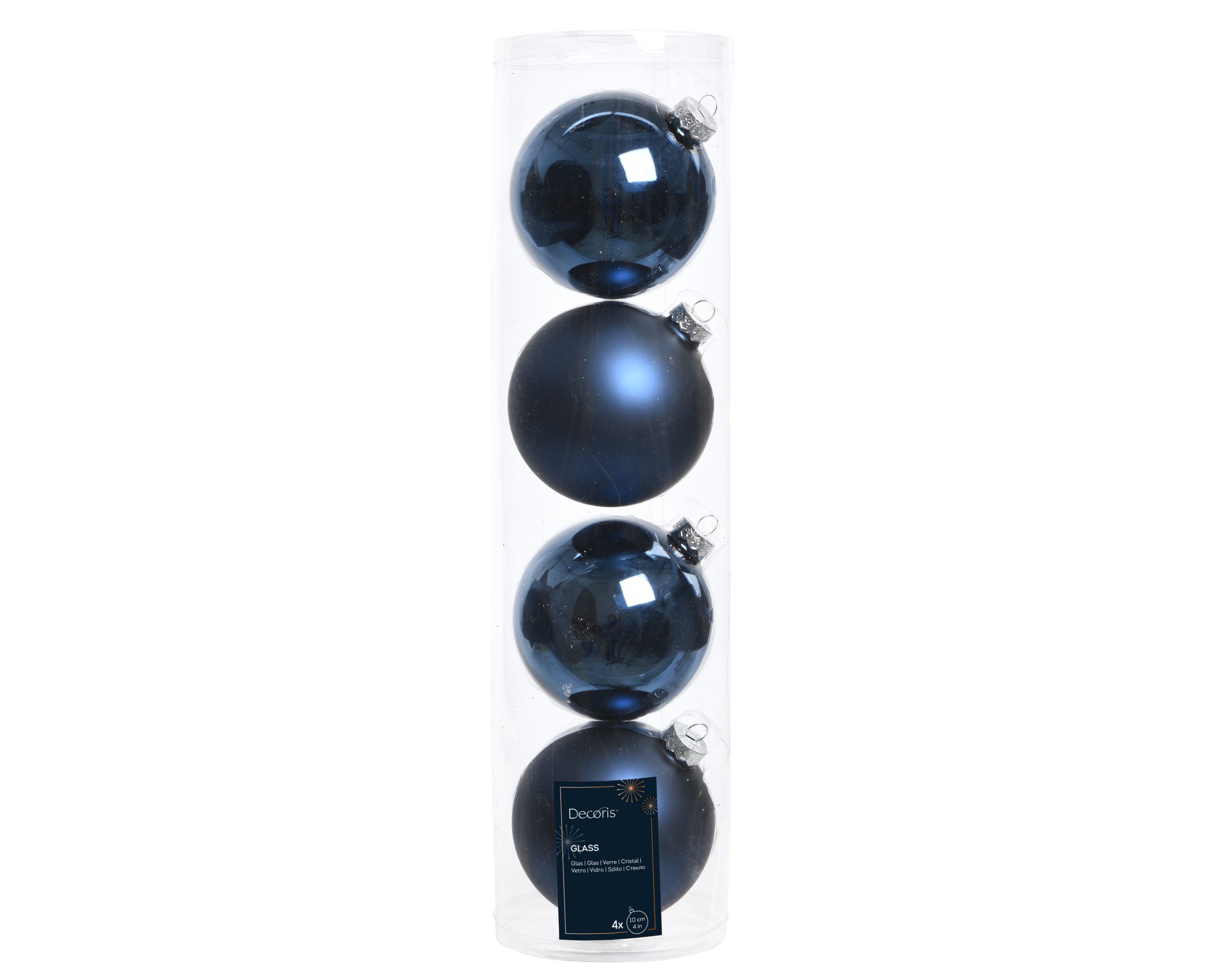 Röhr mit Glas-Weihnachtskugeln in glänzend und matt Ø10 in BLAU. 4 Stk.