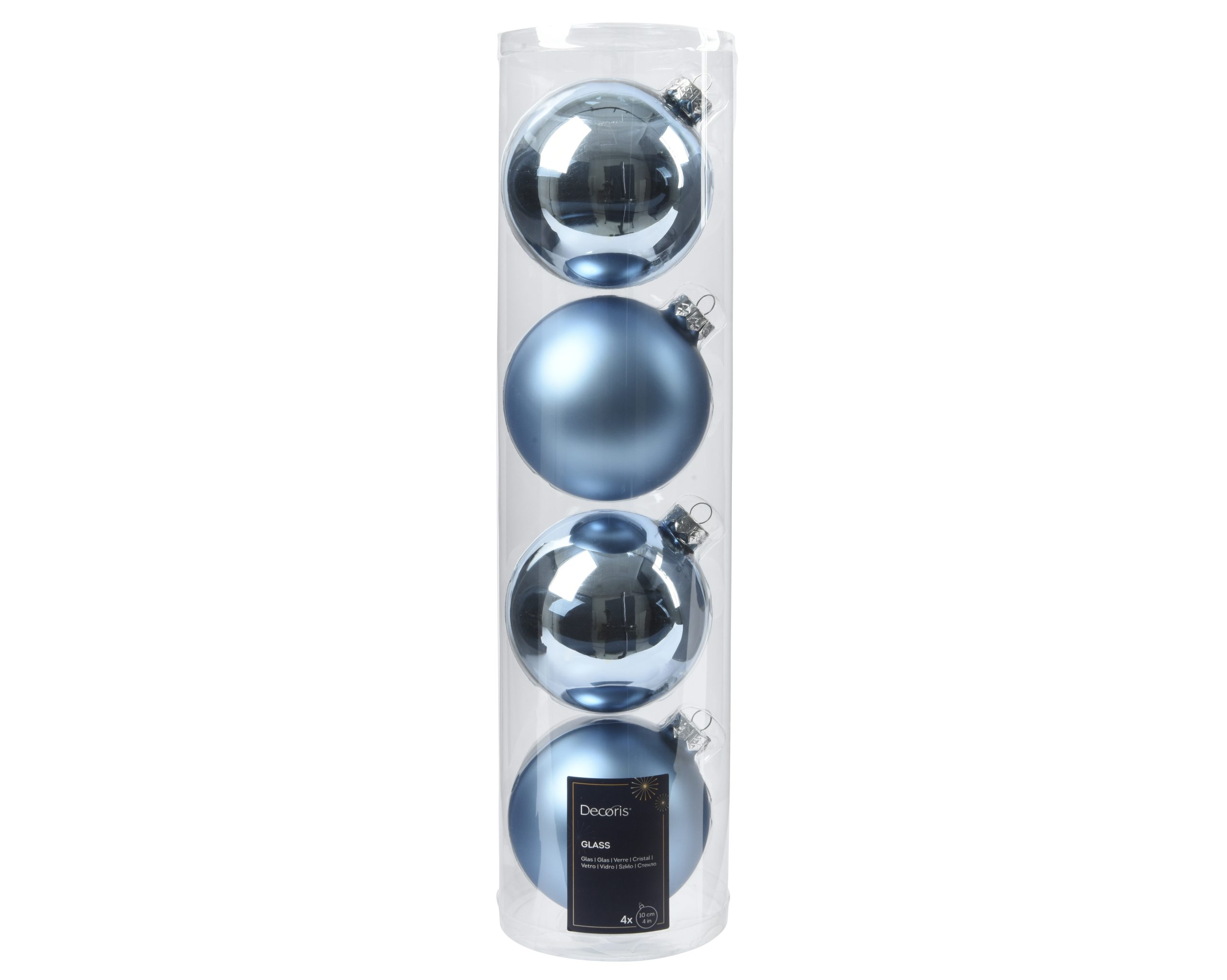 Röhr mit Glas-Weihnachtskugeln in glänzend und matt Ø10 in HELLBLAU. 4 Stk.