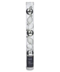 Röhren mit Glas-Weihnachtskugeln und Figuren in SILBER. 9 Stk. 3 x 3 Stk. Die Weihnachtskugeln haben verschiedene Formen. Durchmesser aller Weihnachtskugeln ist 30 mm. Alle in der Farbe Silber in schimmernden matten, glänzenden und transparenten Varianten. Die Röhren mit denselben Formen sind in vielen anderen Farben erhältlich. Wählen Sie ein Farbthema oder mischen Sie mit den anderen Farben, die wir auch verkaufen.