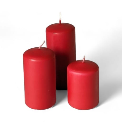 Die gleiche rote Blockkerze ist in zwei weiteren Höhen erhältlich. Siehe im Fotogalerie.
