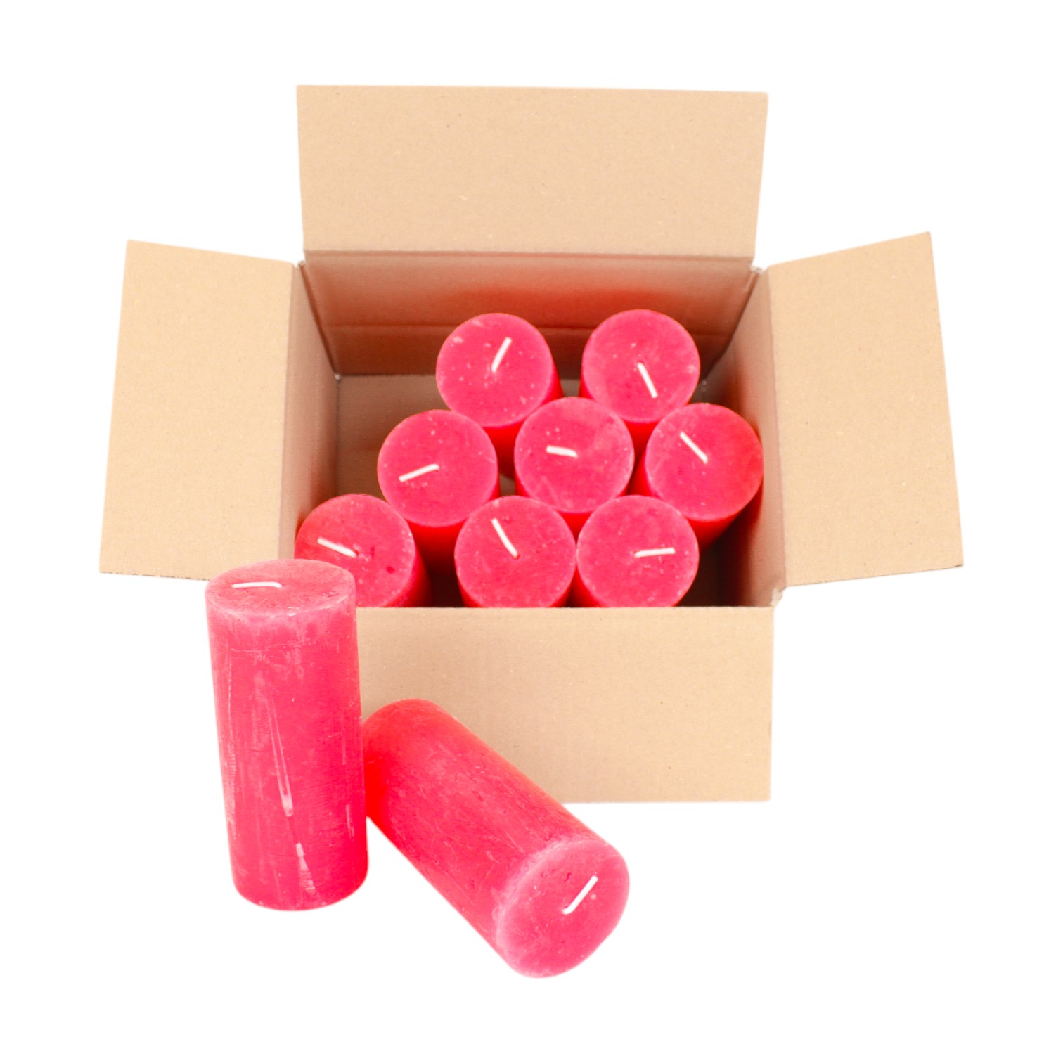 ROTE Rustikale Blockkerze, durchgefärbt 5,7 x 12,5 cm. (10 Stk.)