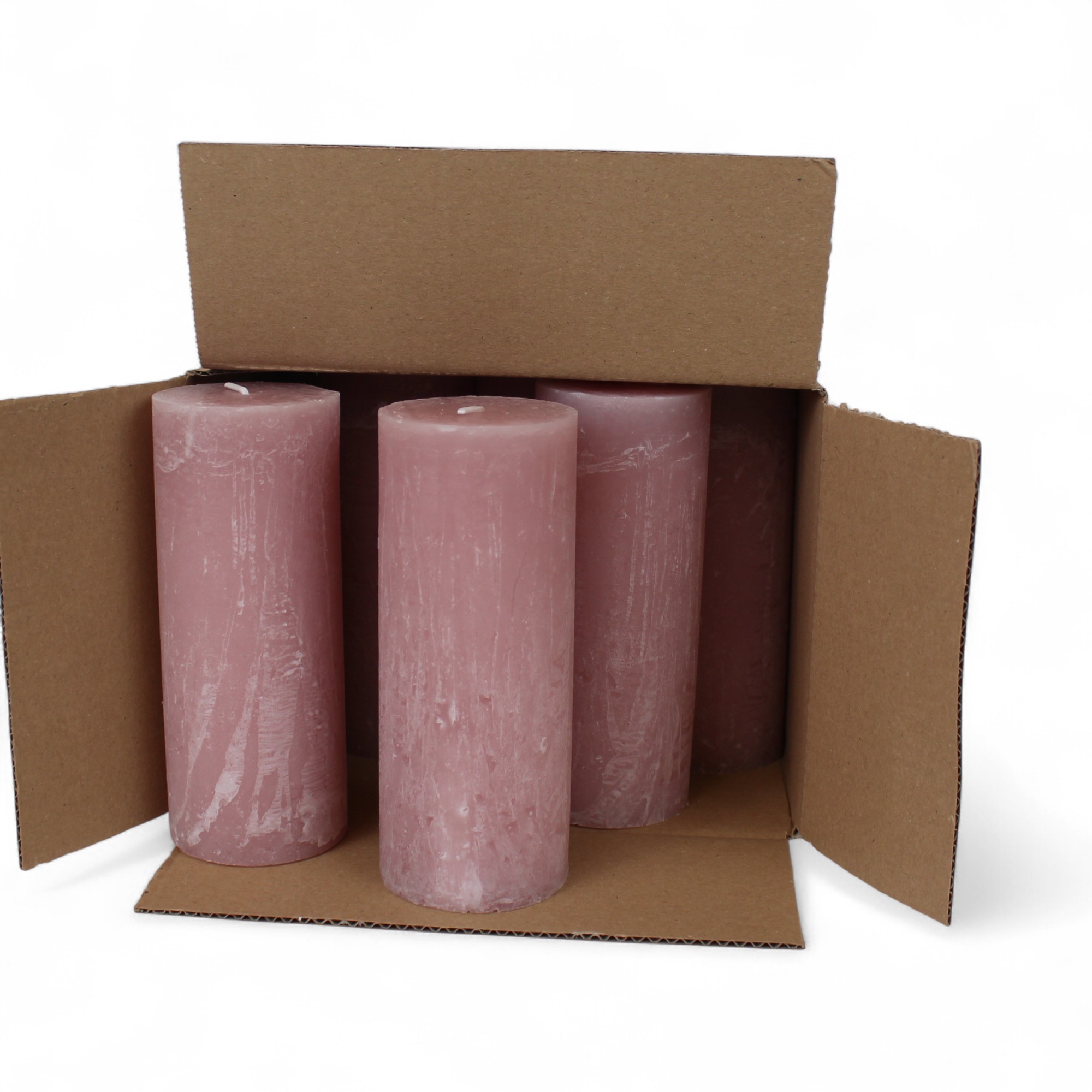 Rustikale Blockkerze, rosa, 6 x 15 cm. (9 stk.)