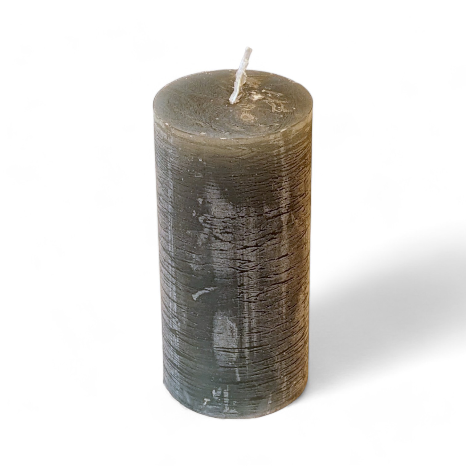 Rustikale STAUBGRÜNE durchgefärbte Blockkerze aus Paraffin. 6 x 12,5 cm.