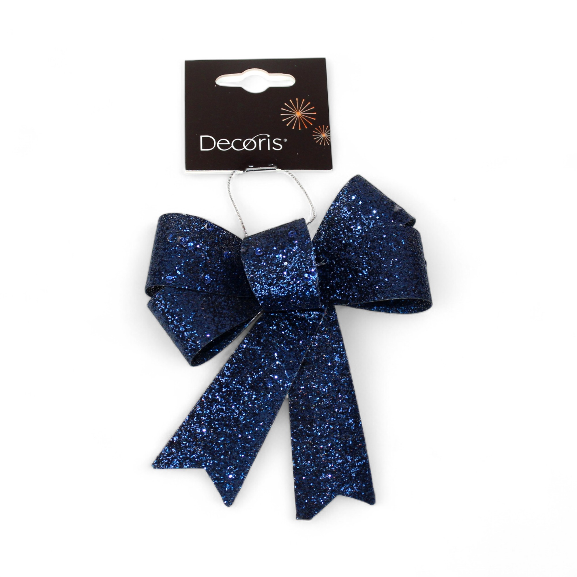 Schleife, BLAU, Frostthema fertig gebunden einsatzbereit. Fertig gefaltete silberglitzernde Schleife in Nachtblau zum Aufhängen. Die Schleife ist in mehreren Farben und Typen erhältlich und perfekt für den Weihnachtsbaum oder als Weihnachtsschmuck im Haus. Die Plastikschleife eignet sich gut zum Dekorieren in Arrangements, an Türen oder in Töpfen auch draußen. Lesen Sie mehr in der Beschreibung über Ideen, wofür Schleifen verwendet werden können.