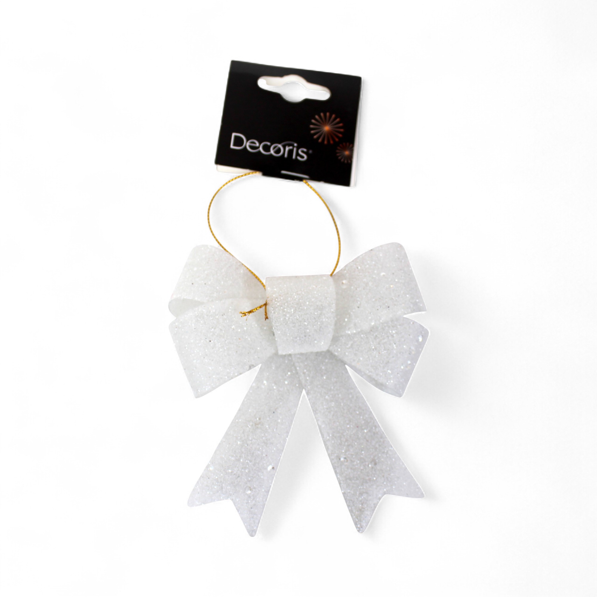 hvid plastik sløjfe med   glimmer færdigfoldede klar som julepynt