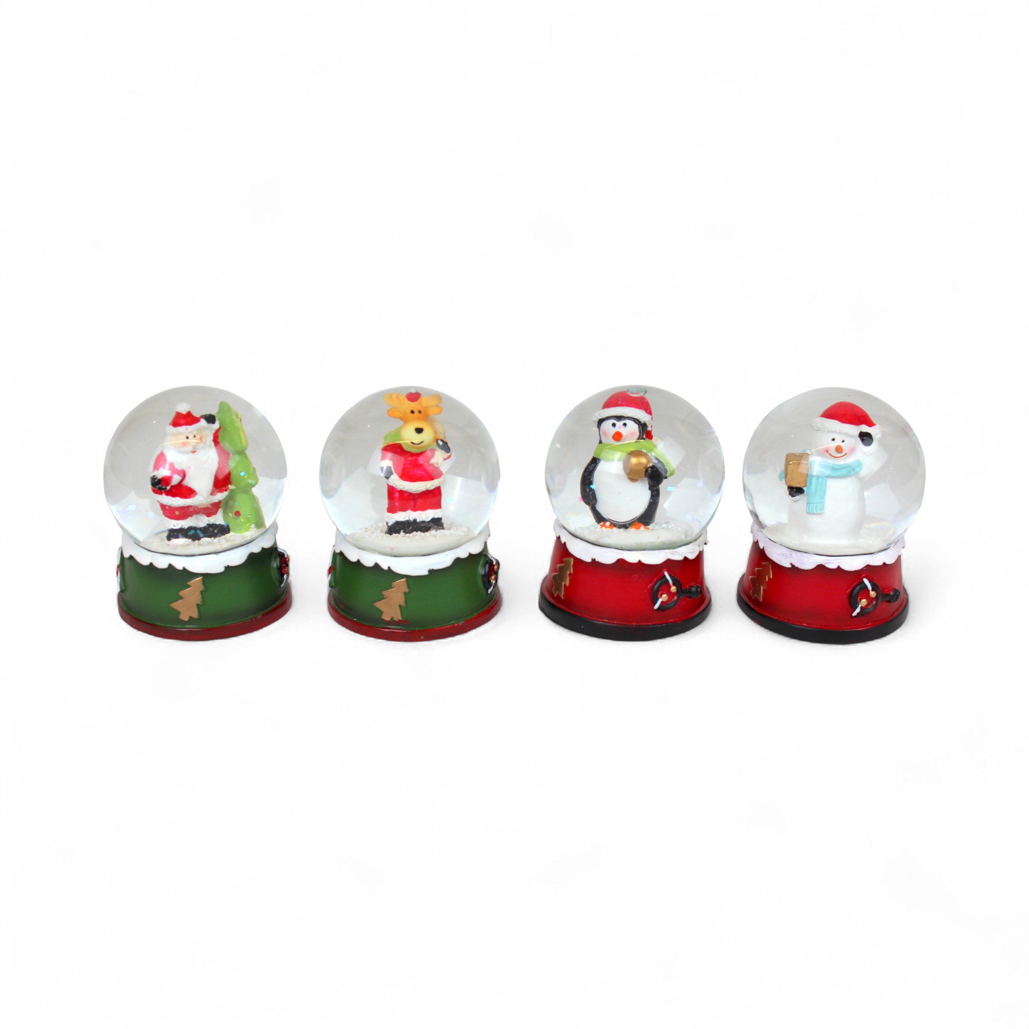 snekugler med glimmersne og julefigurer på 8,5 x 7,5 centimeter