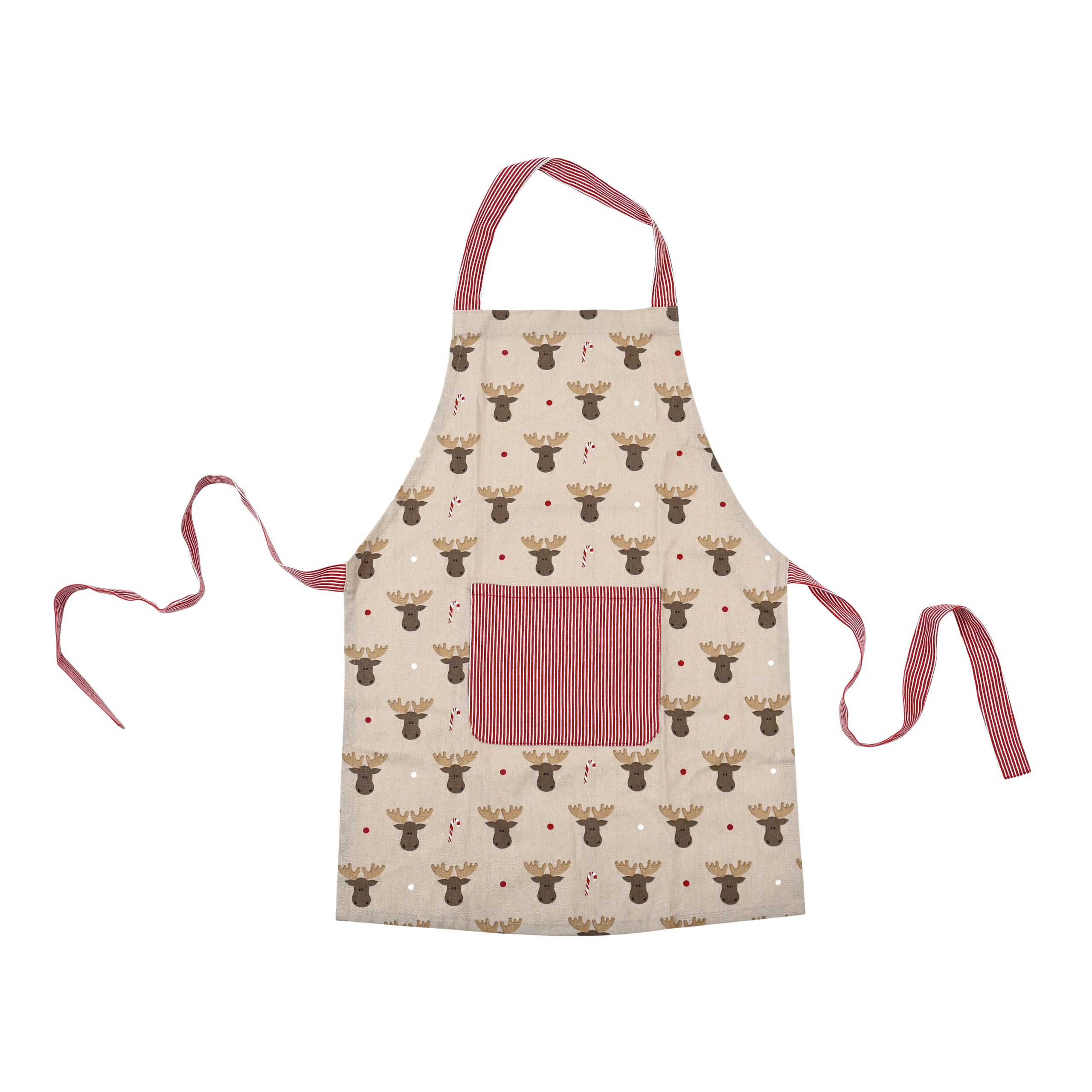 Schürze für Kinder, beige mit Elch, 4-12 Jahre