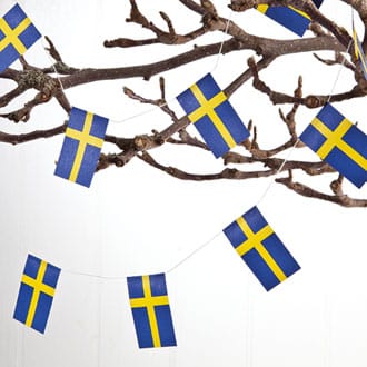 Die Tüte enthält 2 schwedische Girlanden/Flaggen pro Girlande auf jeweils 2 m weißer Schnur aus Papier. Die altmodischen Flaggenketten für den Weihnachtsbaum usw. Die Flaggen in Blau und Gelb sind aus Papier und messen ca. 3 x 4,5 cm.