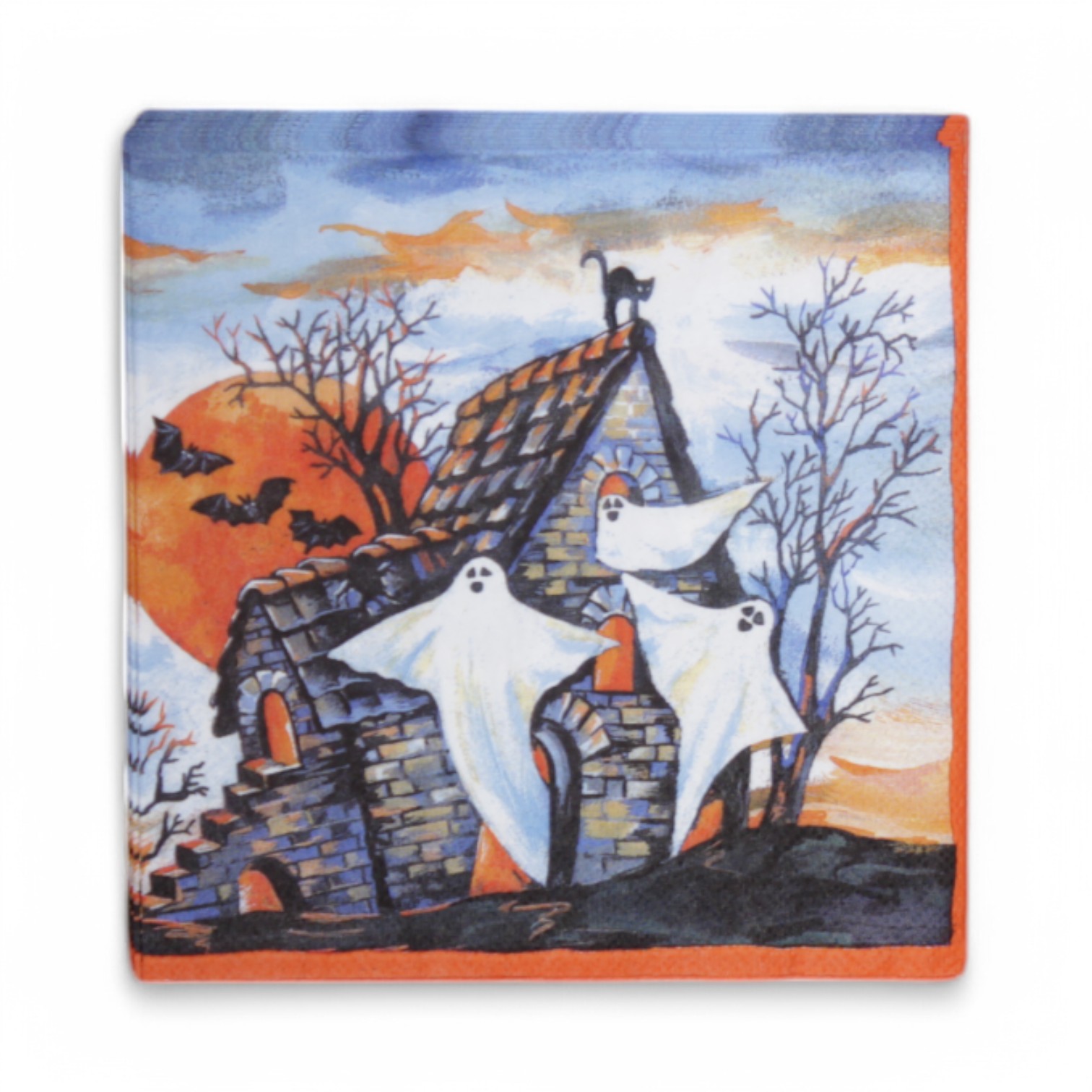 Servietten für Halloween mit Geistern, Fledermäusen und Ruine.