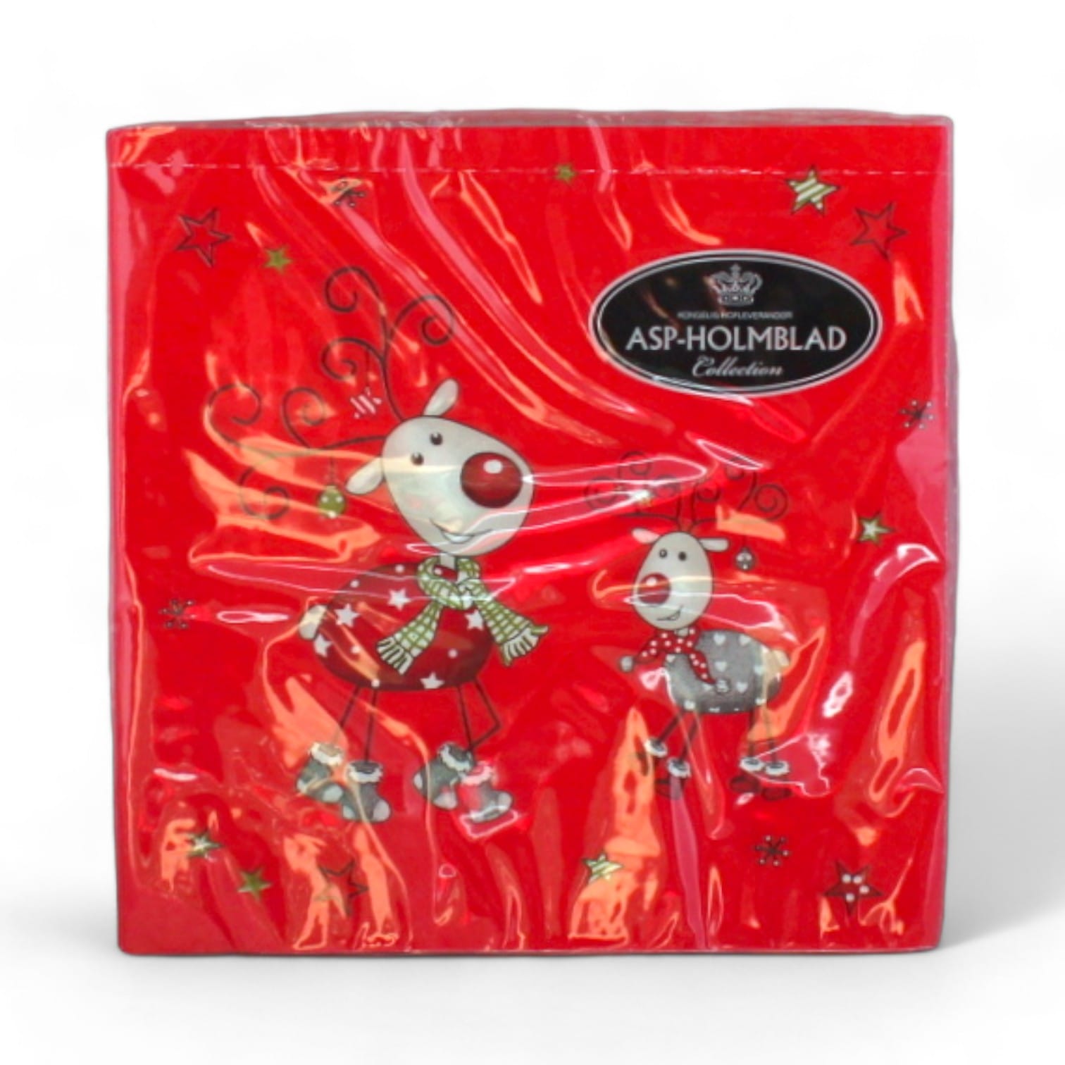 Servietten mit Motiv von Rudolf mit der roten Nase in der Farbe Rot. Die Servietten sind 3-lagig in der Mittagsgröße 33 x 33 cm. Es sind 20 Stück in der Packung.