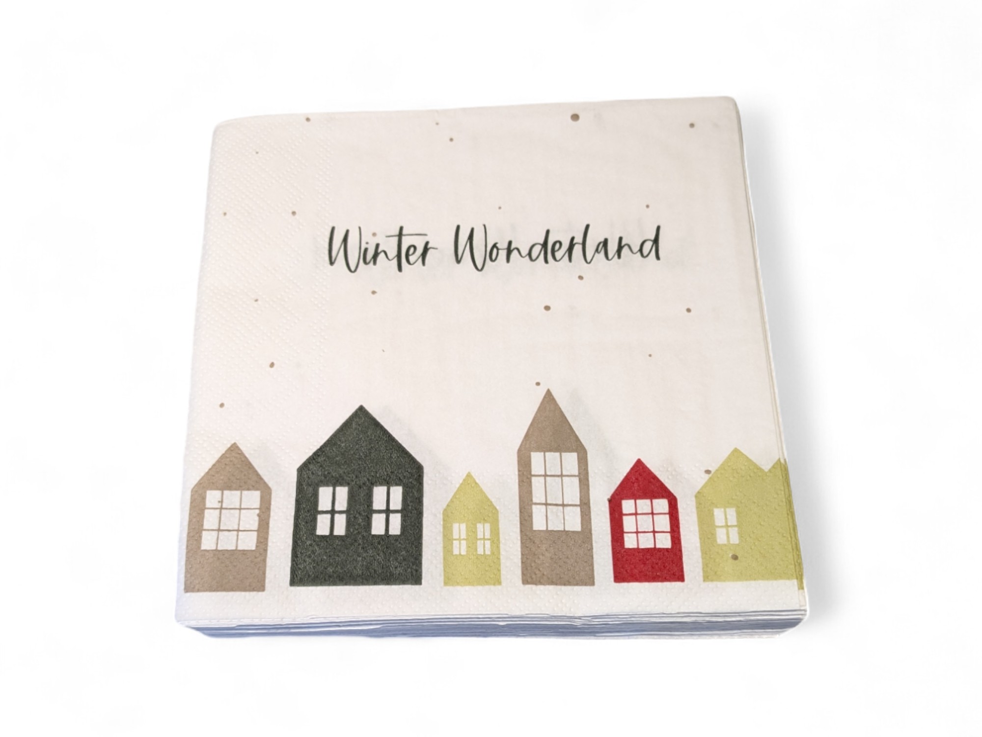 Servietten für Weihnachten. Weißes „Winter Wonderland“ Motiv von Häusern. Mittagessen Größe. 20 Stk.