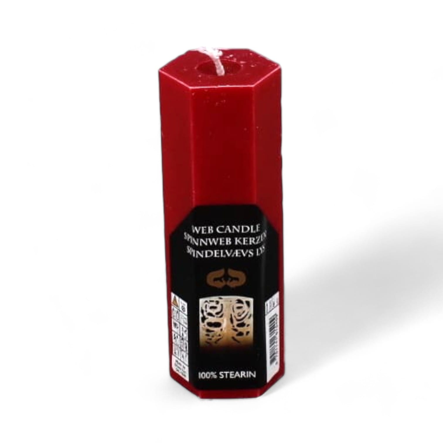Spinnennetzlicht rot, schönes Weihnachtsrot. Höhe 15 cm. Durchmesser 5 cm. 6-eckig. 100% Stearin. Brenndauer 30 Stunden. Das Spinnennetzlicht bildet das charakteristische Spinnennetzmuster, das die Ränder des Stearinlichts beim Brennen formen. Die schönen und kantigen Muster werfen Licht und Schatten in sehr einzigartigen und schönen Formen. Diese Stearinlicht wird auch Spitzenlicht genannt.