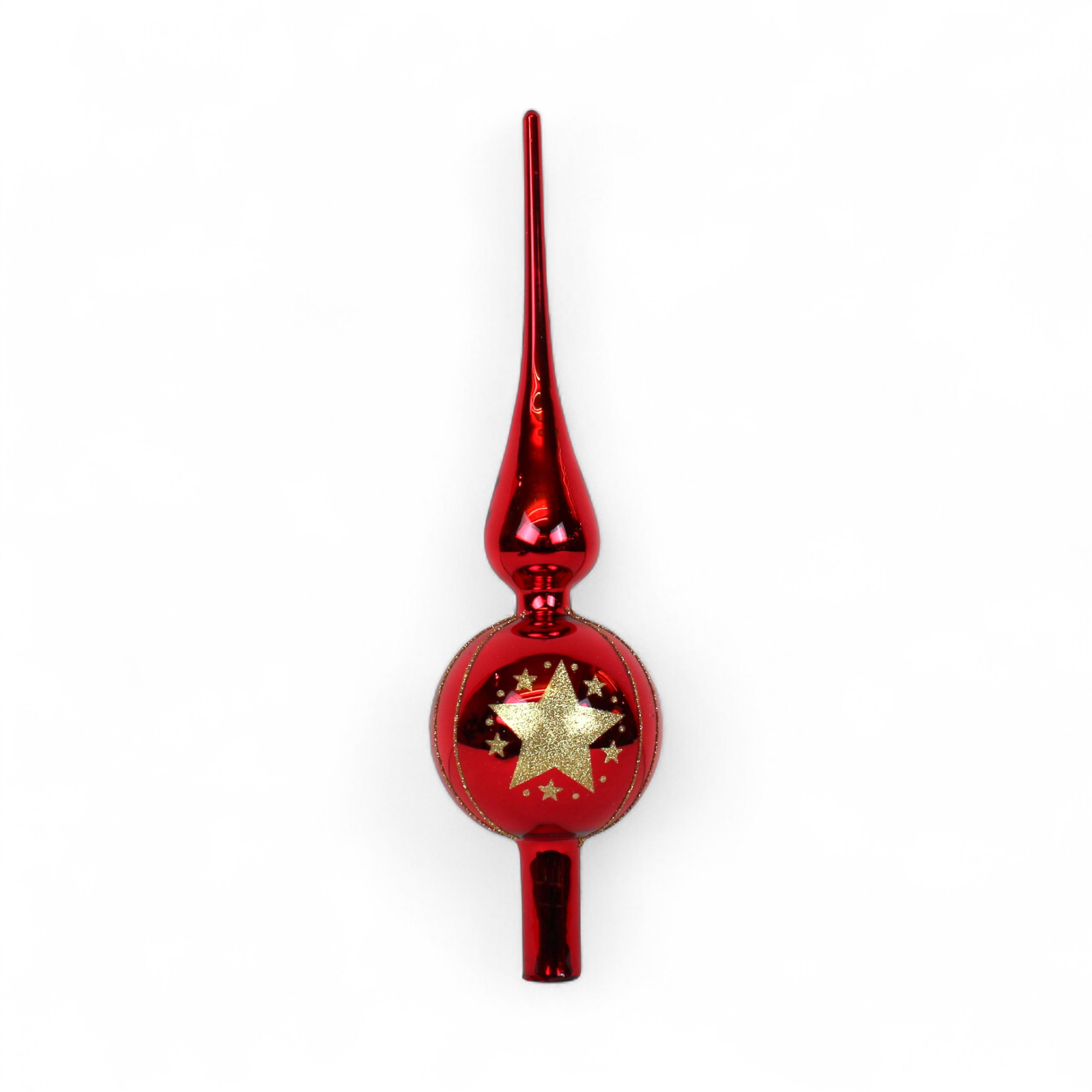 Spitze aus Glas, WEIHNACHTSROT, glänzend mit Glitzer und Sternen, 31 cm.
