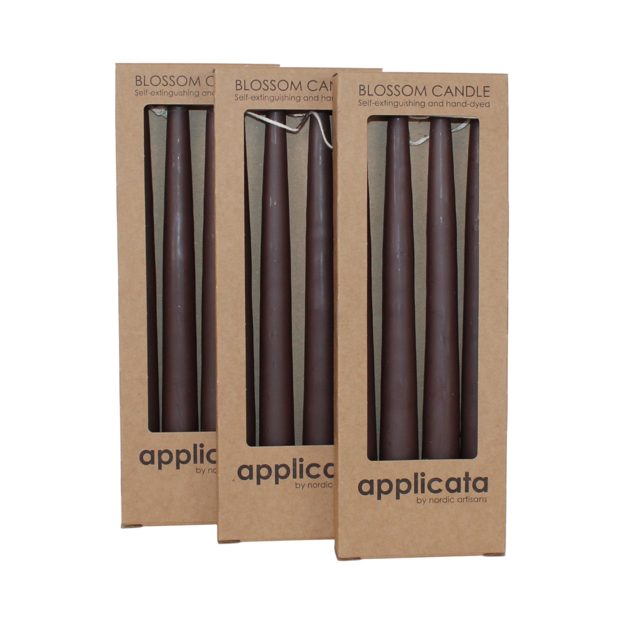 12 styk brune stagelys på 24 centimeter og 7 brændetimer