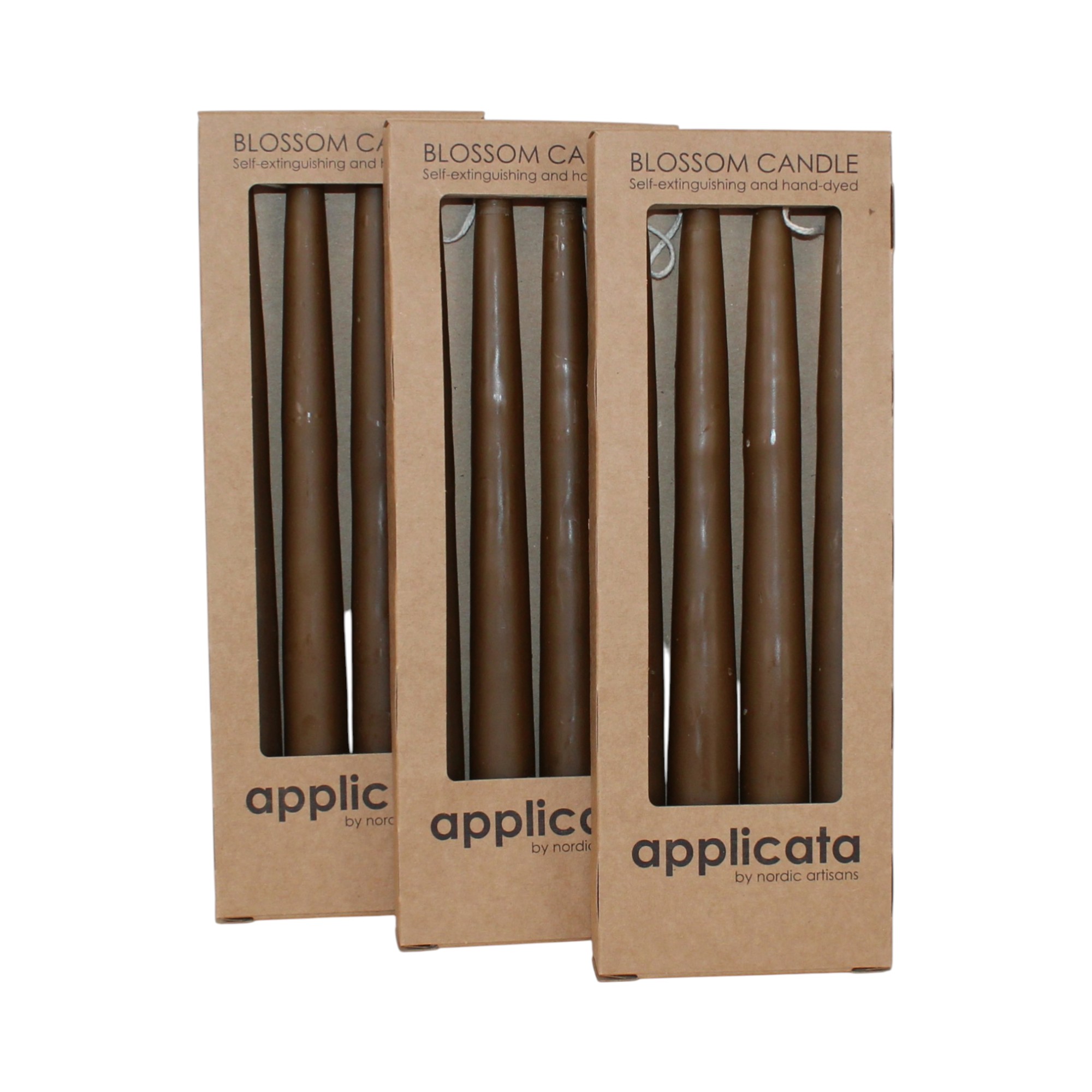 Getauchte dunkel olivgrün Stabkerze in Schachtel. 6 Paare = 12 (stk.) Getauchte Kerzen sind paarweise zusammenhängend 2 und 2
