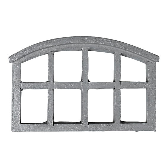 Fenster für Wichtel, schwarzes Stallfenster mit gebogener Oberkante.