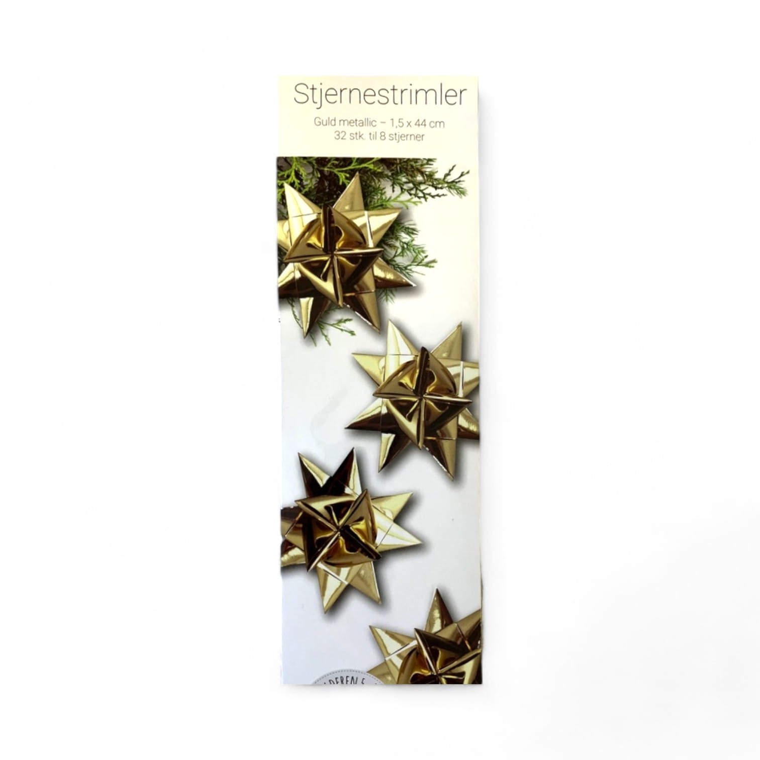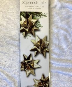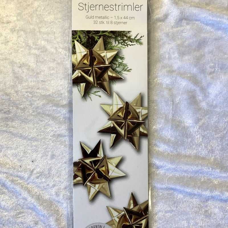 Hier auf alttiljul.dk finden Sie eine riesige Auswahl an Papierstreifen für selbstgemachte Flechtsterne. Sehen Sie sich z.B. diese Sternenstreifen in Gold mit Metallic, 1,5 cm breit für 8 Sterne an.