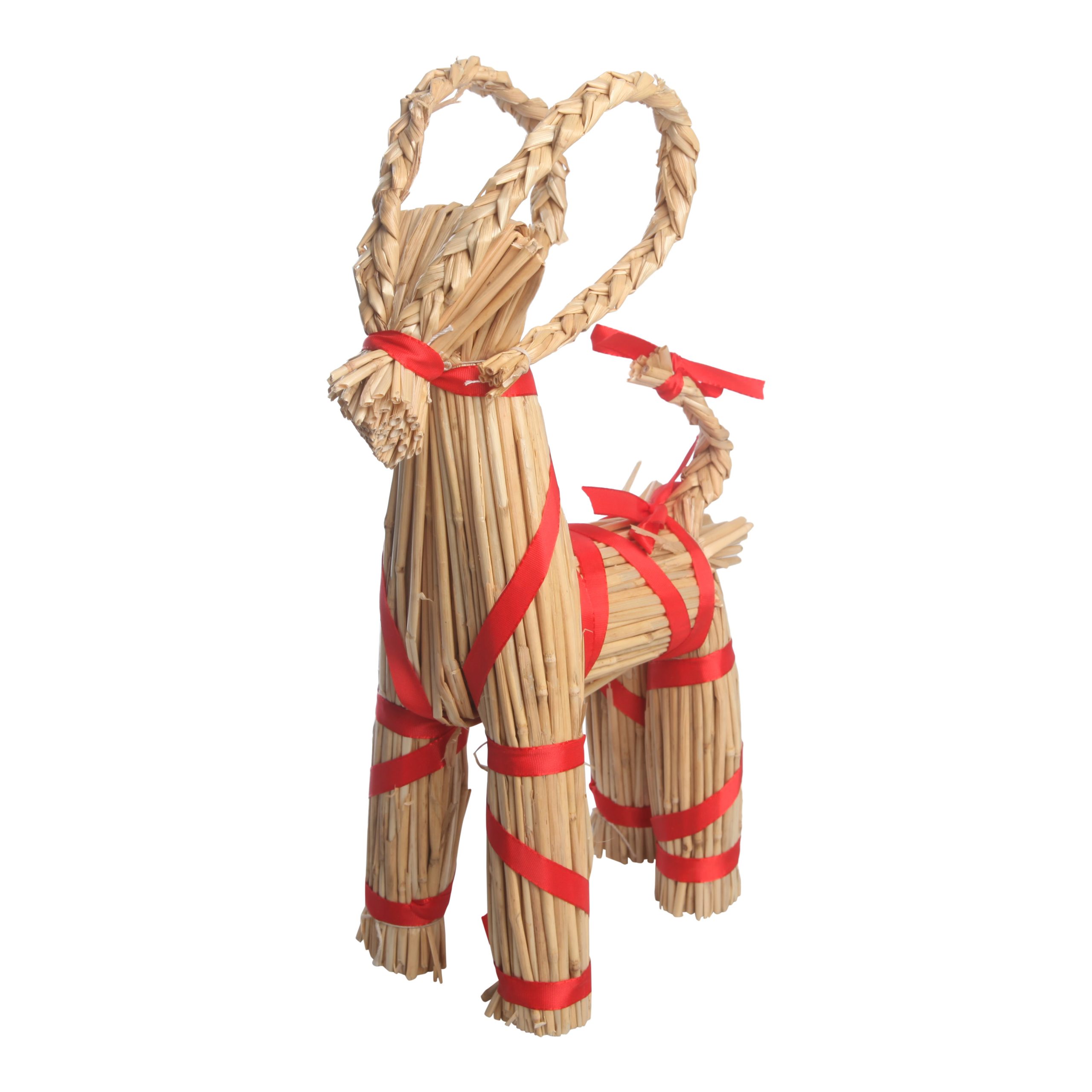 Eine Strohbock ist eine dekorative Figur oder Struktur, die aus Bündeln von Stroh oder Heu besteht, die zusammengebunden sind, um eine Form zu schaffen, die einem Bock ähnelt. Strohböcke haben eine lange Geschichte und wurden in verschiedenen Kulturen auf der ganzen Welt verwendet. Traditionell wurden Strohböcke oft als Teil der Weihnachtsdekorationen in Skandinavien und einigen anderen europäischen Ländern hergestellt. Sie wurden vor dem Haus oder im Hof aufgestellt und an Silvester als Teil der Feierlichkeiten verbrannt. Strohböcke können je nach Tradition oder Zweck unterschiedliche Größen und Designs haben. Einige Strohböcke sind sehr groß und können mehrere Meter hoch sein, während andere kleiner und detaillierter sind. Sie können als stehender Bock mit vier Beinen und einem Kopf geformt sein oder komplexere Figuren haben. In einigen Regionen sind Strohböcke zu einem Symbol für Landwirtschaft und den Kreislauf der Natur geworden. Sie repräsentieren oft Fruchtbarkeit und Glück. Strohböcke werden auch für Dekorationen bei anderen festlichen Anlässen und Veranstaltungen wie Landwirtschaftsausstellungen, Erntefesten oder als Teil von Landschaftskunstwerken verwendet. Es gibt auch moderne Variationen von Strohböcken, die aus künstlichen Materialien wie Metall oder Plastik hergestellt werden. Diese werden oft als Dekorationen in kommerziellen Umgebungen wie Einkaufszentren oder Parks verwendet. Insgesamt sind Strohböcke eine traditionelle Dekoration, die tiefe Wurzeln in verschiedenen Kulturen hat und weiterhin Teil der Feierlichkeiten zu Weihnachten und anderen Ereignissen ist.