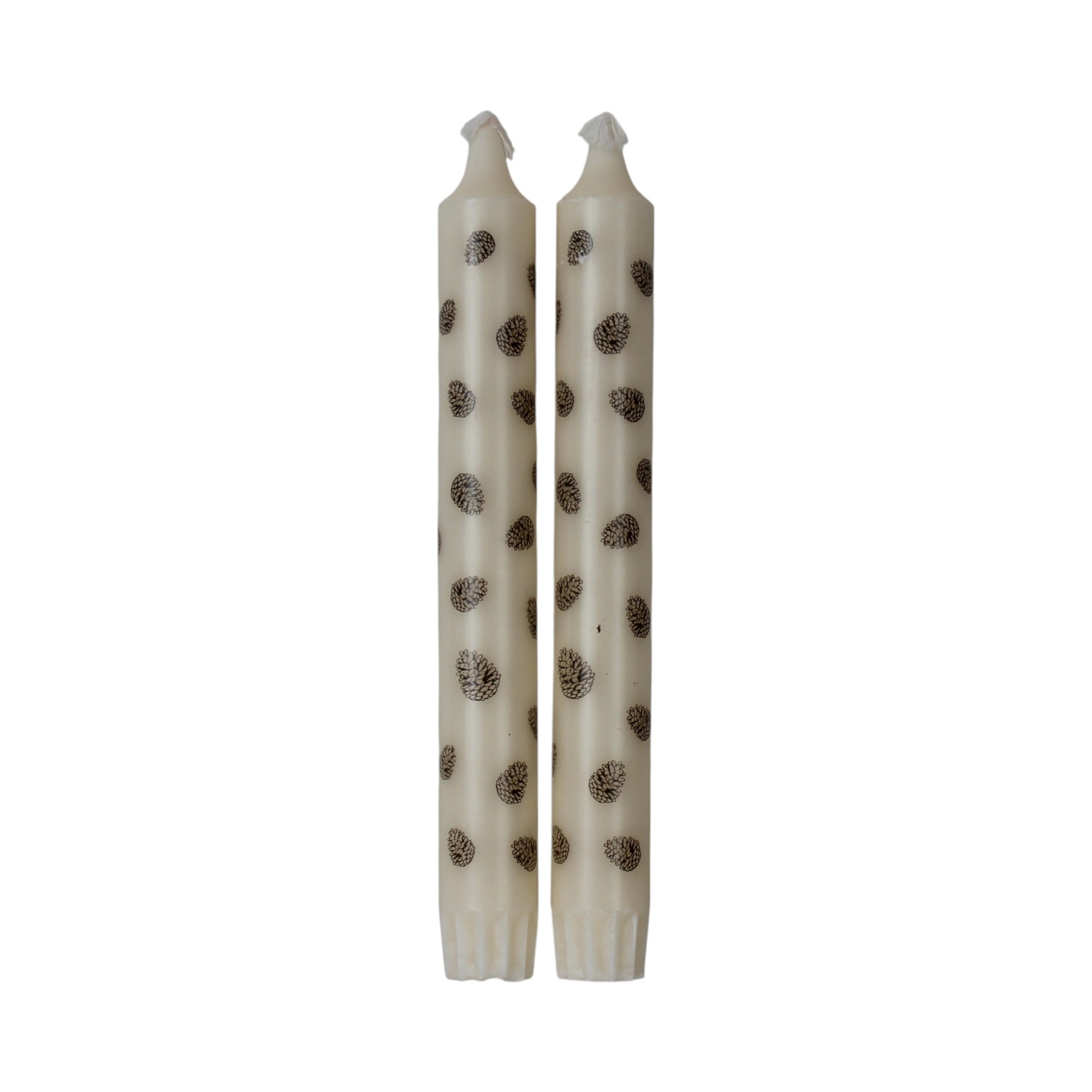 Tafelkerze mit Muster, cremefarben mit braunen Zapfen, 100% reines Stearin, 19 cm (2 stk.)