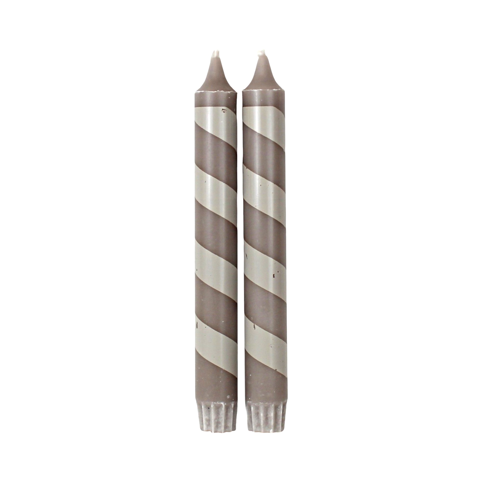 Tafelkerze mit Muster, grau schräg gestreift, 100% reines Stearin, 19 cm (2 stk.)